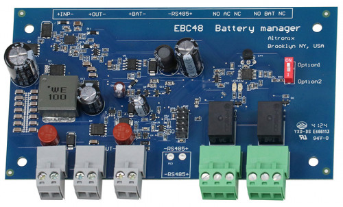 Altronix EBC48 external battery charger provides rapid charging of back-up batteries. Ideal when integrated with Altronix NetWay Spectrum Hardened Switches working with POE240 or POE360/POE367 power supplies to recharge 32AH in under 8 hours. Perfect for applications where constant power isn’t available (switched power) such as a light pole or other location. During the day, when the power is off, the battery will power the devices (up to 100W total) for 16 hours. When power is restored, it’s routed to the devices first and any excess is used to rapidly recharge the battery. EBC48 is a great alternative to expensive solar deployments, trenching to achieve a pathway for traditional electrical connectivity.