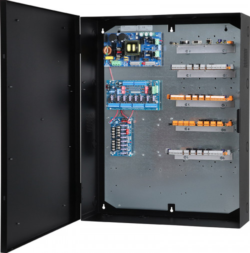 Altronix T2GXK7F8S kit consists of Trove2 enclosure, TCV2 CDVI/Altronix backplane with one (1) 24VDC @ 10A power supply/charger, one (1) eight (8) fuse protected dual input/output access control module, one (1) 12VDC voltage regulator and one (1) eight (8) fuse protected dual input/output power distribution module. This kit also accommodates one (1) 635 CPU and four (4) 635 DRM for up to eight (8) doors in a single enclosure. Trove simplifies board layout and wire management, reduces installation time and labor costs.